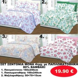ΣΕΤ Σεντόνια ΜΟΝΑ 4 τμχ. 80 ΒΑΜΒΑΚΙ ΜΕ ΠΑΠΛΩΜΑΤΟΘΗΚΗ -1 παπλωματοθήκη-1 πανωσέντονο -και 2 μαξιλαροθήκες σε διάφορα χρώματα