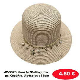 42-3325 Καπέλο Ψαθόχαρτο με Κοχύλια. Αστερίες o33cm