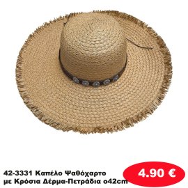 42-3331 Καπέλο Ψαθόχαρτο με Κρόσια Δέρμα-Πετράδια o42cm