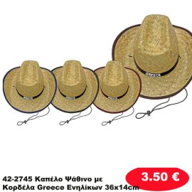 42-2745 Καπέλο Ψάθινο με Κορδέλα Greece Ενηλίκων 36x14cm