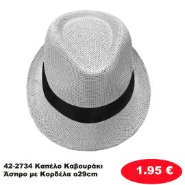 42-2734 Καπέλο Καβουράκι Άσπρο με Κορδέλα o29cm