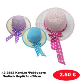 42-2552 Καπέλο Ψαθόχαρτο Παιδικό Κορδέλα o28cm