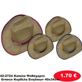 42-2724 Καπέλο Ψαθόχαρτο Greece Κορδέλα Ενηλίκων 40x34cm