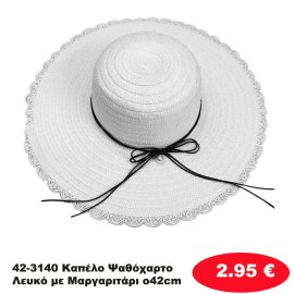 42-3140 Καπέλο Ψαθόχαρτο Λευκό με Μαργαριτάρι o42cm