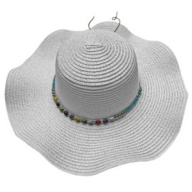 42-3326 Καπέλο Ψαθόχαρτο Μπλε Πετράδια Λευκό o40cm