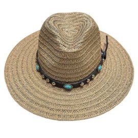 42-3327 Καπέλο Ψαθόχαρτο Cowboy Δέρμα Τυρκουάζ Πέτρες o36cm