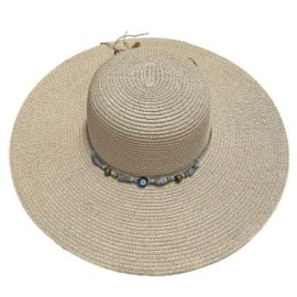 42-3330 Καπέλο Ψαθόχαρτο Πετράδια Ματάκι Μπεζ o42cm