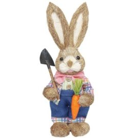 73-2160 Λαγός Όρθιος Ψάθινος Κρατάει Φτυάρι και Καρότο 33x13x10cm