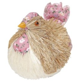 73-2171 Κότα Καθιστή Ψάθινη με ροζ 13x10x12cm