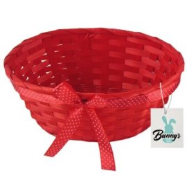 73-2158 Καλάθι Μπαμπού με Πουά Κορδέλα 25x18x10cm