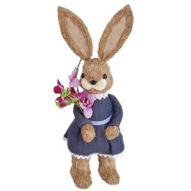 73-2280 Λαγουδίνα Όρθια Ψάθινη με Μπλε Φόρεμα Κρατάει Λουλούδια 50x15x14cm