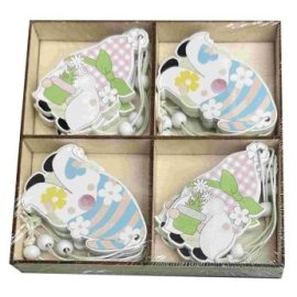 73-2187 Νάνοι Ξωτικά Ξύλινοι Κρεμαστοί με Λουλούδια σετ-12τεμ Ξύλινο κουτί-13x13cm