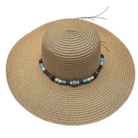 42-3143 Καπέλο Ψαθόχαρτο Μεγάλο με Μπλε Πετράδια Μπεζ o42cm