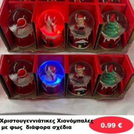 Χριστουγεννιάτικα Διακοσμητικες Χιονόμπαλες μπαταρίας με φως σε διάφορα σχέδια