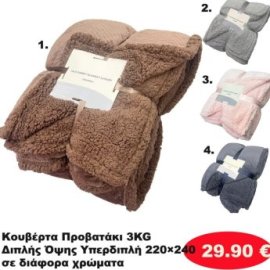 Κουβέρτα προβατάκι 3 κιλά 220Χ240 σε διάφορα χρώματα